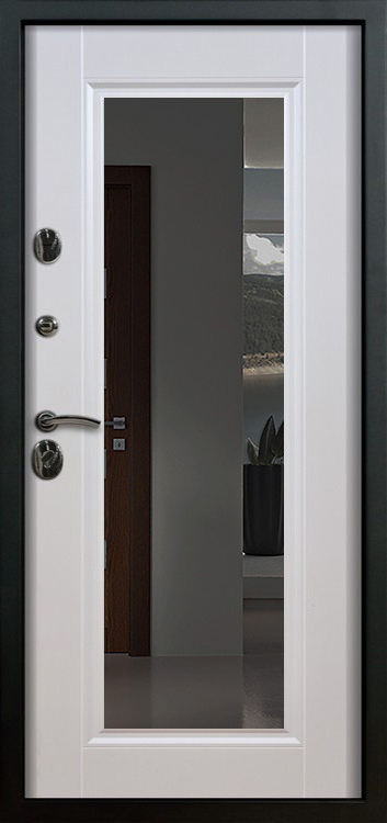 Металлическая входная дверь с зеркалом внутри №1 создана как универсальное решение для дома, квартиры или офиса, где важны и безопасность, и комфорт. Каркас выполнен из прочной профильной трубы с металлическим листом толщиной 2 мм и рёбрами жёсткости, что обеспечивает устойчивость к механическим воздействиям и долгий срок службы. Снаружи дверь покрыта порошковой окраской, стойкой к атмосферным влияниям и царапинам, а изнутри отделана МДФ с ПВХ-покрытием, которое сохраняет свежий вид даже при интенсивной эксплуатации. Встроенное зеркало превращает полотно в практичный элемент интерьера: оно визуально расширяет пространство прихожей и избавляет от лишних предметов мебели. Два контура уплотнителей защищают от пыли и сквозняков, а блокираторы усиливают общую надёжность конструкции. Модель не оснащена терморазрывом, зато отличается продуманным балансом практичности и доступной цены, оставаясь удобным вариантом для повседневного использования. Металлическая входная дверь с зеркалом внутри №1 от производителя: быстрое изготовление и монтаж в Павловском Посаде, индивидуальные размеры, широкий выбор материалов и фурнитуры, официальная гарантия до 10 лет.