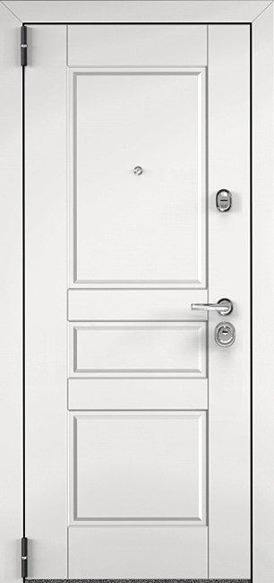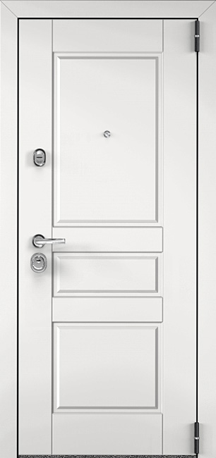 Белая металлическая дверь входная для дома №33 выделяется своим свежим и современным обликом. Универсальный белый цвет делает её уместной как в частном коттедже, так и в квартире или офисе, визуально добавляя простора и подчеркивая аккуратность фасада или интерьера. Конструкция двери основана на стальном листе толщиной 2 мм и усилена профильными трубами, что гарантирует надежность и устойчивость к нагрузкам. Важная особенность модели — наличие терморазрыва в полотне и коробке: благодаря этому дверь не промерзает в зимний период, исключается конденсат и сохраняется комфорт внутри помещения. Внешняя и внутренняя отделка выполнена из МДФ с ПВХ-покрытием, которое защищает поверхность от влаги и механических повреждений, сохраняя первозданный вид надолго. Два контура уплотнителя обеспечивают герметичность и дополнительную защиту от сквозняков. Эта дверь удачно сочетает эстетику и практичность, создавая надежный вход в любое жилище. Белая металлическая дверь входная для дома №33 от производителя: быстрое изготовление и монтаж в Павловском Посаде, индивидуальные размеры, широкий выбор материалов и фурнитуры, официальная гарантия до 10 лет.