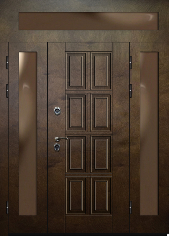 Входная дверь эконом класса с фрамугой №11 сочетает в себе надежность и доступность. Такая дверь прекрасно подходит для установки в местах с умеренной нагрузкой, обеспечивая необходимую защиту и эстетичный внешний вид. Внешняя и внутренняя отделка из МДФ с ПВХ-покрытием обладает хорошей устойчивостью к механическим повреждениям, а также отличается долговечностью. Конструкция из профильной трубы 50х25 мм и металлического листа толщиной 2 мм делает дверь прочной и устойчивой к нагрузкам. Дополнительные ребра жесткости усиливают ее стойкость. Резиновый уплотнитель с двумя контурами гарантирует защиту от холода и пыли, однако, для повышения шумо- и теплоизоляции можно заказать дополнительные опции. Эта модель — идеальный выбор для тех, кто ищет сбалансированное решение по разумной цене. Входная дверь эконом класса с фрамугой №11 от производителя: быстрое изготовление и монтаж в Павловском Посаде, индивидуальные размеры, широкий выбор материалов и фурнитуры, официальная гарантия до 10 лет.
