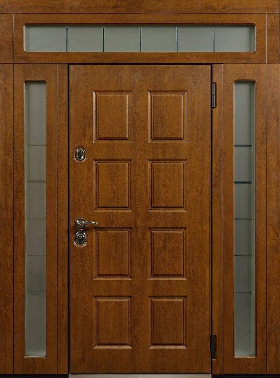 Элитная парадная дверь с фрамугой №4 станет не только защитой вашего дома, но и его визитной карточкой. Ее внешний вид, сочетающий плиту МДФ с ПВХ-покрытием, выглядит современно и гармонично, сохраняя стойкость к внешним воздействиям, таким как царапины и вмятины. Конструкция, выполненная из профильной трубы 50х25 мм и металлического листа толщиной 2 мм, гарантирует долговечность и прочность. Благодаря фрамуге дверь пропускает свет, добавляя пространству легкости. Встроенные замки с ригелями обеспечивают надежную защиту. Возможность выбора направления открывания и комбинирования отделок делает эту модель универсальной для любых интерьеров. Также можно дополнить дверное полотно зеркалом или стеклопакетом, а если требуется, заменить замки на более высокозащищенные модели. Элитная парадная дверь с фрамугой №4 от производителя: быстрое изготовление и монтаж в Павловском Посаде, индивидуальные размеры, широкий выбор материалов и фурнитуры, официальная гарантия до 10 лет.
