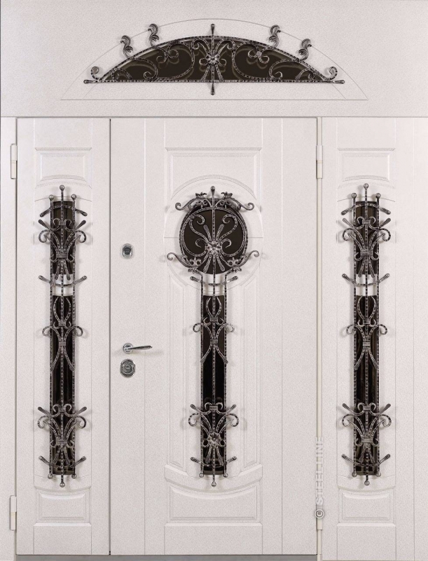 Входная дверь с кованой ручкой и фрамугой №6 представляет собой элегантное и надежное решение для тех, кто ценит не только безопасность, но и стиль. Эта модель идеально подойдет для оформления парадных входов в дома и офисы. Внешняя отделка из плиты МДФ придает двери современный и чистый вид, который сохраняется долго благодаря стойкости к внешним воздействиям. Благодаря профильной трубе с толщиной металла 2 мм и ребрам жесткости, конструкция двери гарантирует прочность и долговечность. Дополнительный элемент — кованая ручка, которая добавляет изысканности и подчеркивает высокий класс изделия. Стандартная комплектация не включает шумо- и теплоизоляцию, однако она может быть установлена по желанию. Резиновый уплотнитель с двумя контурами обеспечит хорошую герметичность, защищая от ветра и пыли. Подходит для установки как в частных домах, так и в офисах, привлекая внимание своим необычным и стильным дизайном. Входная дверь с кованой ручкой и фрамугой №6 от производителя: быстрое изготовление и монтаж в Павловском Посаде, индивидуальные размеры, широкий выбор материалов и фурнитуры, официальная гарантия до 10 лет.