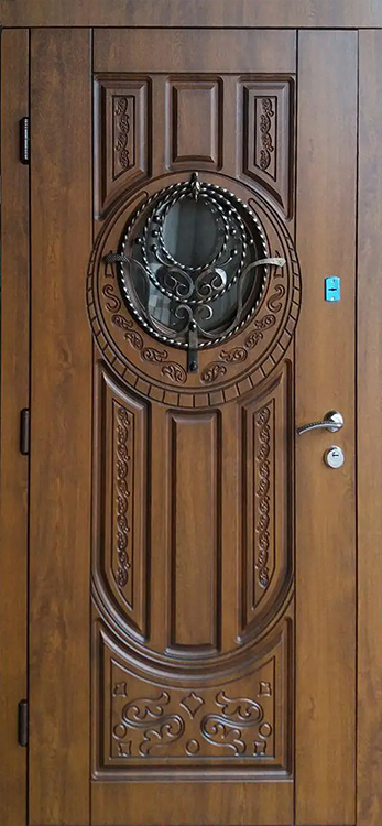 Владельцы коттеджей ценят входные конструкции, которые одинаково подчеркивают статус и защищают от любых внешних факторов. Здесь удачно сочетаются прочный металл и массив дуба, придающий поверхности солидность и благородство. Натуральное дерево сохраняет цвет и текстуру долгие годы, устойчиво к механическим повреждениям и перепадам температуры. Внутри конструкции скрыт стальной каркас толщиной 1,5 мм с ребрами жесткости и противосъёмными блокираторами, что делает полотно практически неприступным. Особое преимущество — терморазрыв коробки и полотна, благодаря которому дверь не промерзает даже в сильные морозы и сохраняет тепло в доме. Именно на этом контрасте надежности и эстетики выделяется железная дверь со стеклом и ковкой №21, украшенная изящными декоративными элементами. Три контура магнитного уплотнения обеспечивают герметичность, а система замков Kale Kilit повышает уровень безопасности, при этом конструкция допускает установку современных умных решений и дополнительных декоративных опций. Железная дверь со стеклом и ковкой №21 от производителя: быстрое изготовление и монтаж в Павловском Посаде, индивидуальные размеры, широкий выбор материалов и фурнитуры, официальная гарантия до 10 лет.