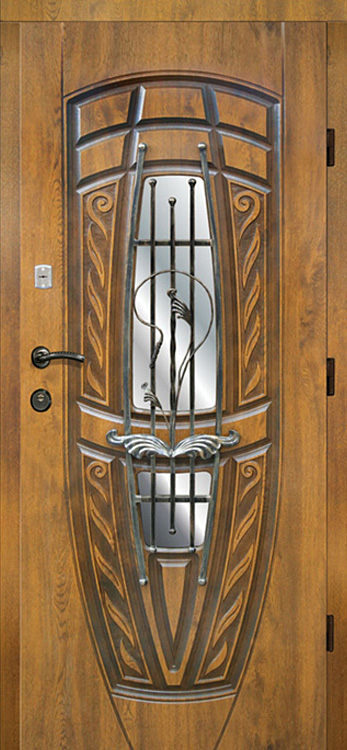 Для загородного дома важна дверь, которая умеет быть не только красивой, но и практичной. Натуральное дерево в отделке делает её внешне солидной и теплой, а декоративная ковка добавляет изящества и превращает вход в стильный акцент фасада. В основе конструкции лежит прочный стальной каркас с листом металла толщиной 1,5 мм и ребрами жесткости, а противосъёмные блокираторы обеспечивают дополнительный уровень защиты. Особого внимания заслуживает терморазрыв, выполненный в коробке и полотне: он надежно изолирует дом от холода, предотвращает промерзание и сохраняет уют даже при сильных морозах. Входная дверь уличная с ковкой №22 также оснащена тройным контуром магнитного уплотнения, что усиливает герметичность и помогает снизить шум. Конструкция позволяет выбирать размеры и дополнения по вкусу, включая стеклопакет, зеркало или видеодомофон, создавая гармонию между безопасностью, удобством и выразительным дизайном. Входная дверь уличная с ковкой №22 от производителя: быстрое изготовление и монтаж в Павловском Посаде, индивидуальные размеры, широкий выбор материалов и фурнитуры, официальная гарантия до 10 лет.