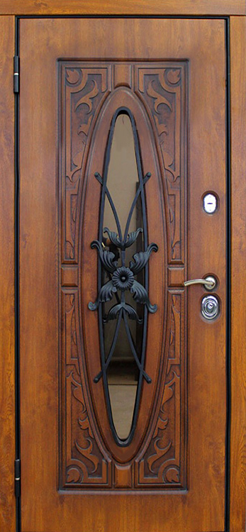 В частном доме дверь должна быть не просто барьером, а настоящей визитной карточкой, и именно эту задачу решает входная дверь со стеклом и ковкой №23. Натуральное дерево в отделке придает ей благородный и теплый вид, а декоративная ковка превращает конструкцию в выразительный элемент архитектуры. Внутри скрыт стальной каркас с листом металла 1,5 мм и противосъёмными блокираторами, что обеспечивает прочность и устойчивость к взлому. Особого внимания заслуживает наличие терморазрыва как в коробке, так и в полотне: он защищает от промерзания, исключает появление конденсата и помогает сохранять тепло зимой и прохладу летом. Тройной контур магнитного уплотнения усиливает герметичность и снижает уровень уличного шума, а пенопласт повышенной плотности в качестве наполнителя добавляет теплоизоляции. Входная дверь в частный дом со стеклом и ковкой №23 гармонично сочетает надежность и эстетику, позволяя владельцу адаптировать её под стиль фасада с помощью дополнительных декоративных решений. Входная дверь в частный дом со стеклом и ковкой №23 от производителя: быстрое изготовление и монтаж в Павловском Посаде, индивидуальные размеры, широкий выбор материалов и фурнитуры, официальная гарантия до 10 лет.