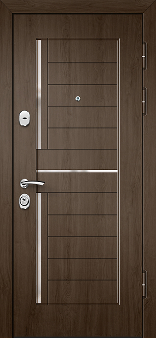Глубокий оттенок венге всегда выглядит благородно и современно, а декоративная панель придаёт полотну завершённый стильный образ. Дверь МДФ цвета венге с внешней декоративной панелью №538 подходит для установки как в частных домах, так и в квартирах или офисах, где ценят сочетание надёжности и эстетики. Плиты МДФ отличаются прочностью, стойкостью к мелким механическим повреждениям и долго сохраняют первоначальный вид без потери насыщенности цвета. Конструкция выполнена на основе стального каркаса с листом металла толщиной 2 мм и рёбрами жёсткости, что обеспечивает высокий уровень прочности. Два контура уплотнения повышают комфорт эксплуатации, защищая от сквозняков. Дополнительно дверь можно оснастить шумо- и теплоизоляцией, зеркалом, стеклопакетом или коваными элементами, сделав её не только практичной, но и индивидуальной деталью интерьера. Дверь МДФ цвета венге с внешней декоративной панелью №538 от производителя: быстрое изготовление и монтаж в Павловском Посаде, индивидуальные размеры, широкий выбор материалов и фурнитуры, официальная гарантия до 10 лет.