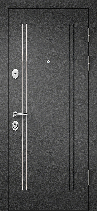 Дверь металлическая в порошке №59 — надежное решение для квартир, офисов и подъездов, где требуется прочная конструкция и аккуратный внешний вид. Снаружи используется молотковое напыление, которое не боится механических повреждений и долго сохраняет насыщенный цвет, а внутренняя поверхность отделана ламинатом, создающим ощущение уюта и подчеркивающим практичность модели. Каркас собран из профильной трубы 50х25 мм, усилен ребрами жесткости и листом стали толщиной 2 мм, что придает двери устойчивость к силовым нагрузкам. Дополнительную защиту обеспечивают два замка: верхний сувальдный «Просам» и нижний цилиндровый «Мосрентген», оба с тремя ригелями. Два контура резинового уплотнения помогают справляться со сквозняками, а при желании дверь можно укомплектовать шумо- и теплоизоляцией. Модель №59 легко адаптируется под любые требования: возможна комбинация отделок, установка зеркала, стеклопакета или декоративной ковки. Дверь металлическая в порошке №59 от производителя: быстрое изготовление и монтаж в Павловском Посаде, индивидуальные размеры, широкий выбор материалов и фурнитуры, официальная гарантия до 10 лет.