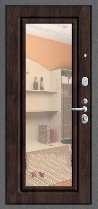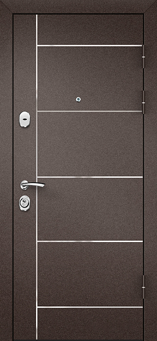 Каркас из профильной трубы и стальной лист толщиной 2 мм обеспечивают прочность конструкции и устойчивость к взлому, а два контура уплотнителей защищают помещение от сквозняков и уличного шума. Входная дверь в квартиру с зеркалом №10 выделяется сочетанием практичного молоткового напыления снаружи и аккуратной плиты МДФ внутри. Такое покрытие не боится механических повреждений и перепадов температуры, долго сохраняя первоначальный вид. Зеркало на внутренней стороне делает прихожую светлее и визуально просторнее, заменяя полноценное настенное. Дополнительные блокираторы и система ребер жёсткости усиливают надежность. Возможность изготовления в любых размерах позволяет адаптировать модель под особенности квартиры, офиса или частного дома, сохранив баланс между эстетикой и безопасностью. Входная дверь в квартиру с зеркалом №10 от производителя: быстрое изготовление и монтаж в Павловском Посаде, индивидуальные размеры, широкий выбор материалов и фурнитуры, официальная гарантия до 10 лет.
