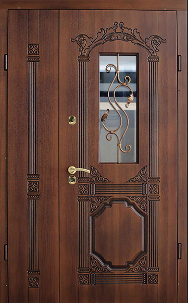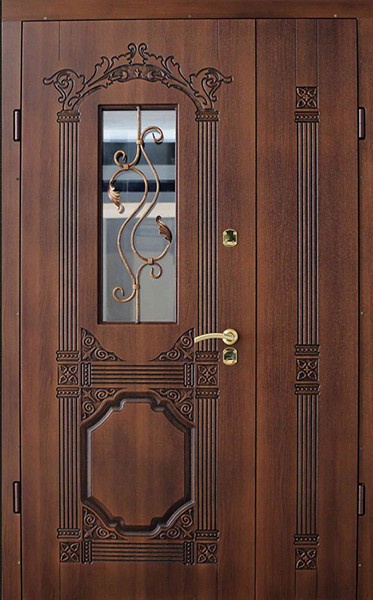 Уличная двухстворчатая дверь со стеклом и кованой решеткой №26 — это не только надежная защита для вашего дома, но и элемент, который подчеркнет его стиль и индивидуальность. Внешняя отделка из МДФ с ПВХ обеспечивает долговечность, устойчивость к внешним воздействиям и сохранение эстетического вида на долгое время. Добавление кованой решетки и стеклопакета придает двери элегантности, а также улучшает светопропускание, создавая комфортное освещение в вашем помещении. Уличная двухстворчатая дверь со стеклом и кованой решеткой №26 от производителя: быстрое изготовление и монтаж в Павловском Посаде, индивидуальные размеры, широкий выбор материалов и фурнитуры, официальная гарантия до 10 лет.