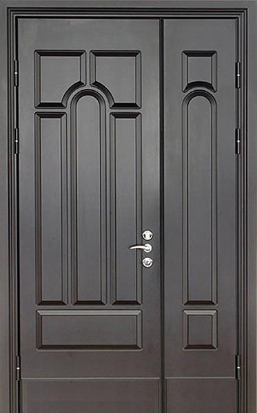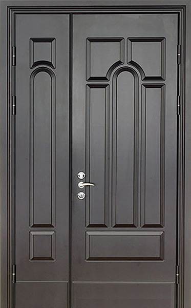 Металлическая двухстворчатая дверь для дома цвета графит №27 – это стильное и надежное решение для вашего жилья. Внешняя и внутренняя отделка выполнены из МДФ, что придает двери изысканный вид и увеличивает её стойкость к механическим повреждениям. Цвет графит придаёт двери современный и элегантный оттенок, который легко впишется в интерьер как частных домов, так и современных офисов. Металлическая двухстворчатая дверь для дома цвета графит №27 от производителя: быстрое изготовление и монтаж в Павловском Посаде, индивидуальные размеры, широкий выбор материалов и фурнитуры, официальная гарантия до 10 лет.