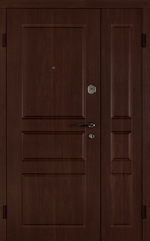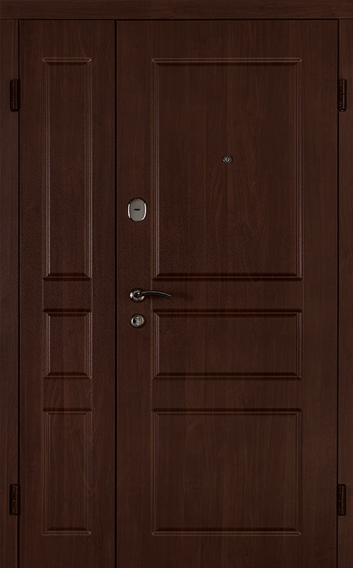 Коричневая входная полуторная дверь с филенчатой створкой №4 – это надежное и стильное решение для вашего дома или офиса. Внешняя и внутренняя отделка из МДФ с ПВХ обеспечивает долговечность и устойчивость к повреждениям, сохраняя при этом элегантный внешний вид. Прочные материалы конструкции, такие как профильная труба 50х25 мм и лист металла толщиной 2 мм, гарантируют стабильность и безопасность. Ребра жесткости из профильных труб 40х25 мм усиливают дверное полотно, а уплотнение с двумя контурами надежно защищает от внешних факторов. Несмотря на отсутствие терморазрыва, в двери реализованы терморазрывы в коробке и полотне, что помогает улучшить теплоизоляцию. Возможность выбора дополнительных опций, таких как шумоизоляция, делает эту дверь универсальной для различных условий эксплуатации. Коричневая входная полуторная дверь с филенчатой створкой №4 от производителя: быстрое изготовление и монтаж в Павловском Посаде, индивидуальные размеры, широкий выбор материалов и фурнитуры, официальная гарантия до 10 лет.