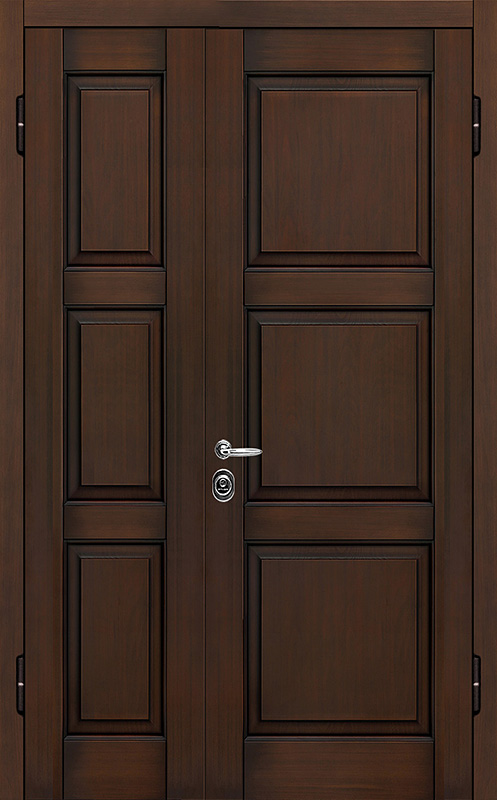 Двойная филенчатая дверь для загородного дома венге №7 сочетает в себе элегантность и прочность. Ее внешняя отделка выполнена из панелей МДФ с ПВХ, что придает двери современный вид, а также обеспечивает устойчивость к механическим повреждениям и долговечность. Каркас из профильной трубы 50х25 мм и полотно толщиной 2 мм гарантируют надежность и устойчивость к нагрузкам. Ребра жесткости из профильных труб 40х25 мм усиливают конструкцию, а уплотнение с двумя контурами защищает от проникновения влаги и пыли. Замки "Просам" и "Мосрентген" с тремя ригелями обеспечивают высокий уровень безопасности. В дверь можно добавить дополнительные элементы, такие как стеклопакет, зеркало или кованые детали, что позволяет адаптировать ее под любой интерьер. Терморазрывы в коробке и полотне способствуют лучшей теплоизоляции, обеспечивая комфорт в любое время года. Двойная филенчатая дверь для загородного дома венге №7 от производителя: быстрое изготовление и монтаж в Павловском Посаде, индивидуальные размеры, широкий выбор материалов и фурнитуры, официальная гарантия до 10 лет.