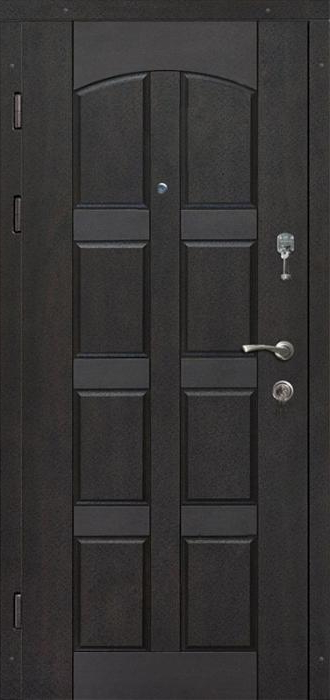Входная дверь для дома уличная №18 разработана для установки в условиях, где от двери требуется максимум прочности и устойчивости к погодным испытаниям. Молотковое напыление на внешней стороне не только придает фактурный декоративный эффект, но и защищает поверхность от влаги, ударов и мелких повреждений, сохраняя привлекательный вид долгие годы. Внутри дверь отделана панелями МДФ с ПВХ-покрытием, которые отличаются стойкостью к царапинам и удобством в уходе, а также гармонично вписываются в любой интерьер прихожей. Каркас и полотно выполнены из профильных труб, усиленных стальным листом толщиной 2 мм и дополнительными ребрами жесткости, что делает конструкцию надежной и долговечной. Два контура резинового уплотнителя эффективно защищают от сквозняков и уличной пыли. Особое внимание заслуживает наличие терморазрыва в коробке и полотне: эта технология предотвращает промерзание и образование конденсата, обеспечивая сохранение тепла даже в сильные морозы. Входная дверь для дома уличная №18 от производителя: быстрое изготовление и монтаж в Павловском Посаде, индивидуальные размеры, широкий выбор материалов и фурнитуры, официальная гарантия до 10 лет.